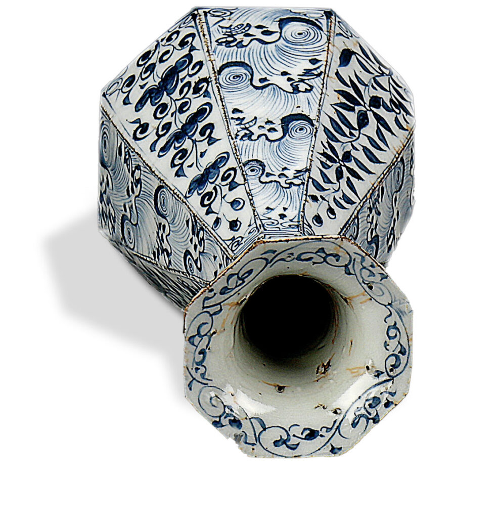 Pear-shaped Octagonal Vase with Floral Design in Blue Underglaze