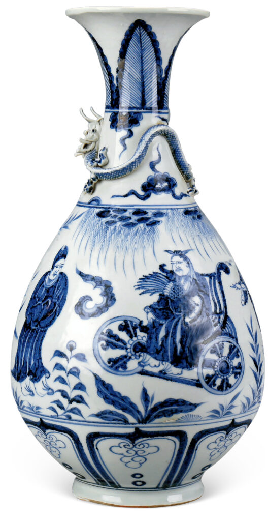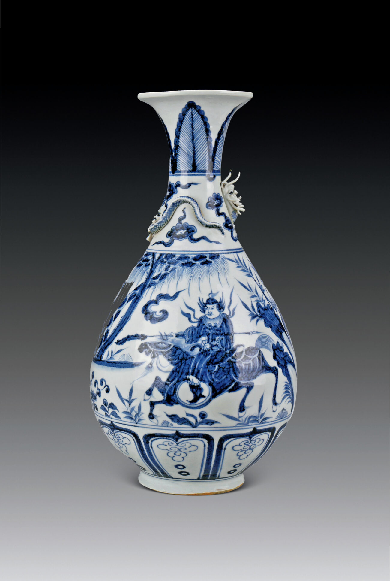 Pear-shaped Vase with Attached Dragon and ‘Figures’ in Cobalt-blue Underglaze