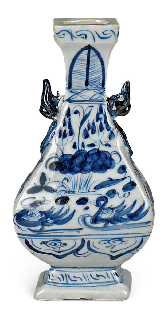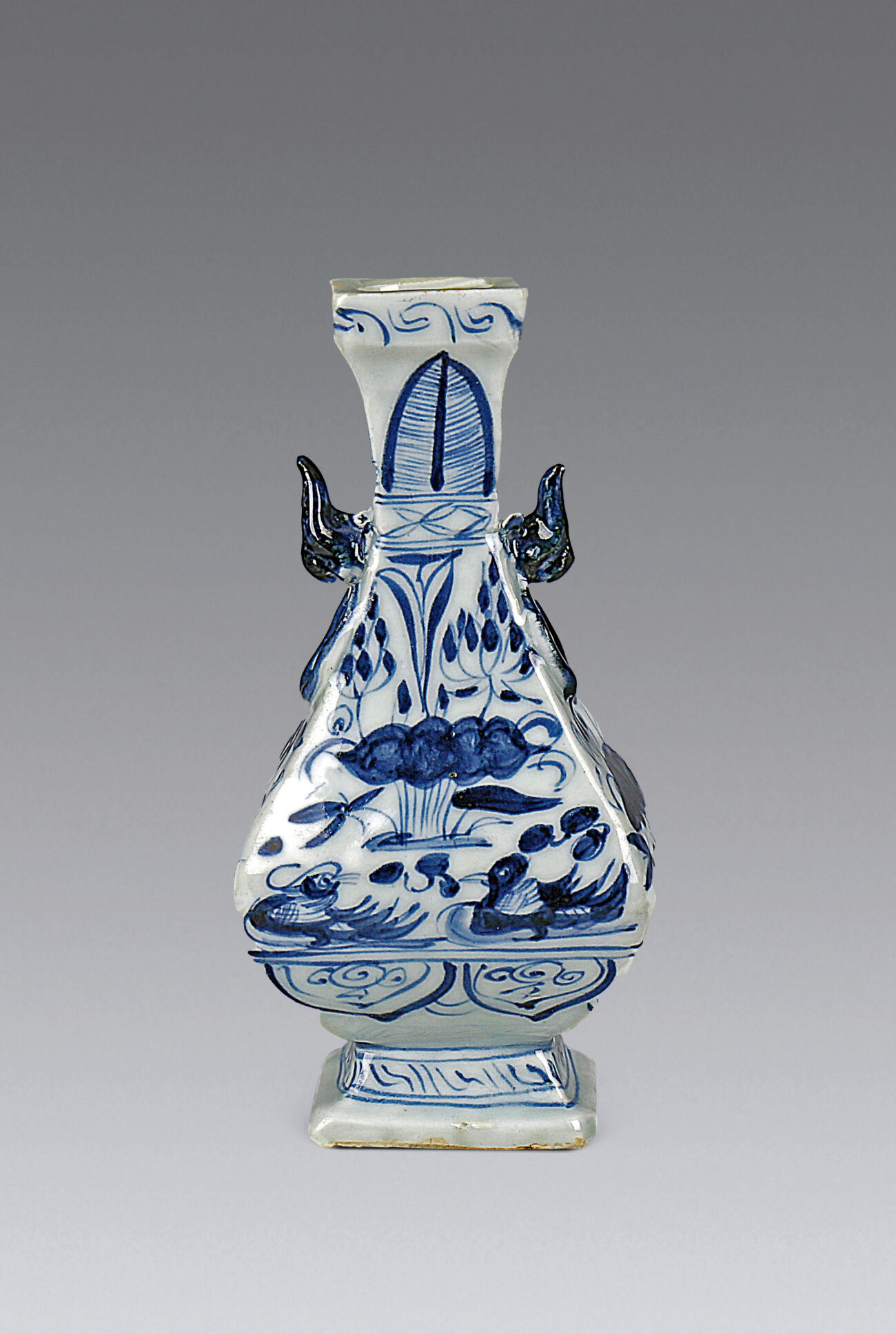 Rectangular Flagon with ‘Mandarin Ducks in Lotus Pond’ in Cobalt-blue Underglaze