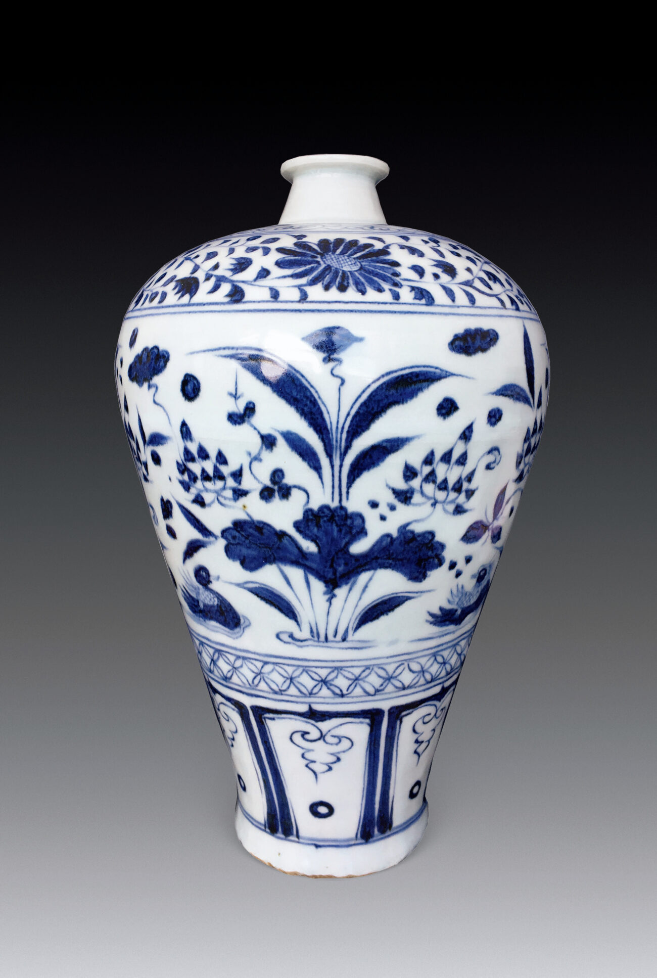 Vase with ‘Mandarin Ducks in Lotus Pond’ in Cobalt-blue Underglaze
