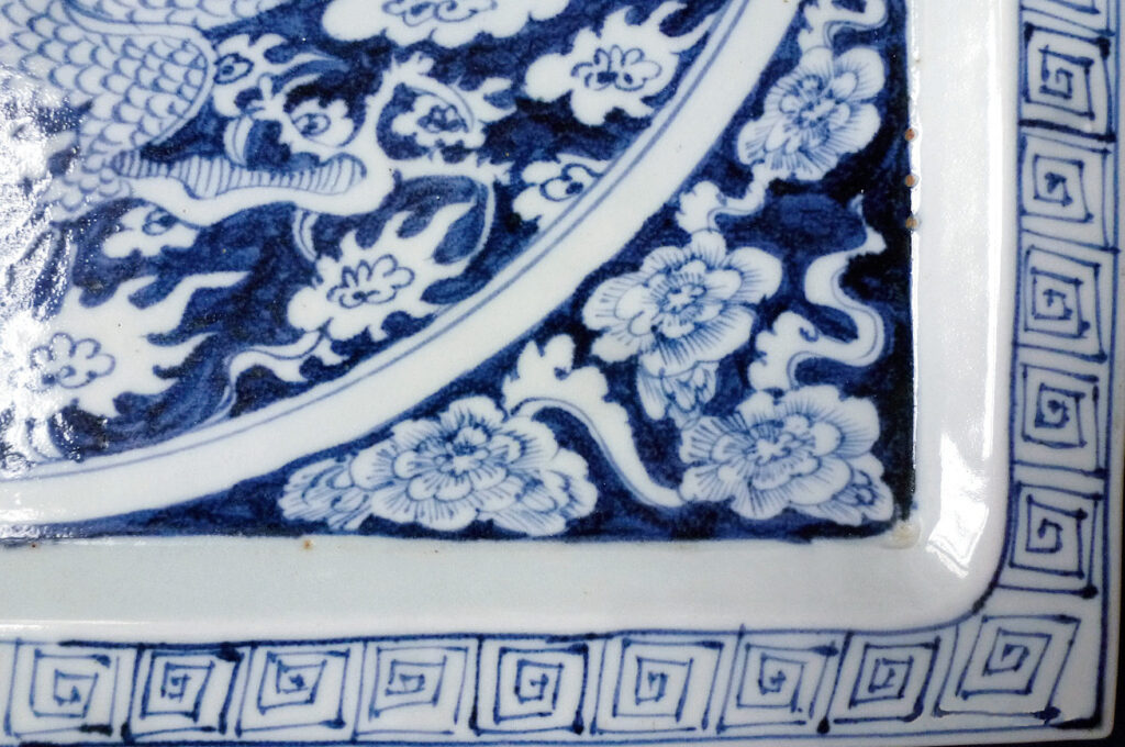 Square Plate with Dragon Pattern in Cobalt-blue Underglaze
