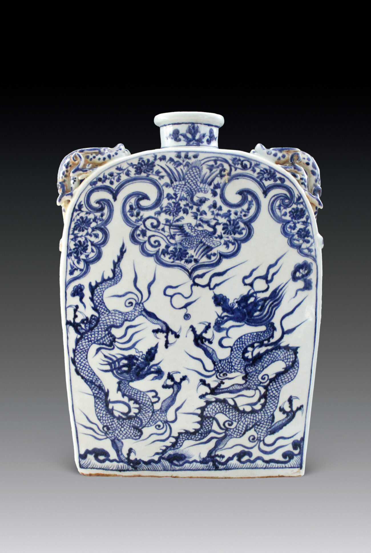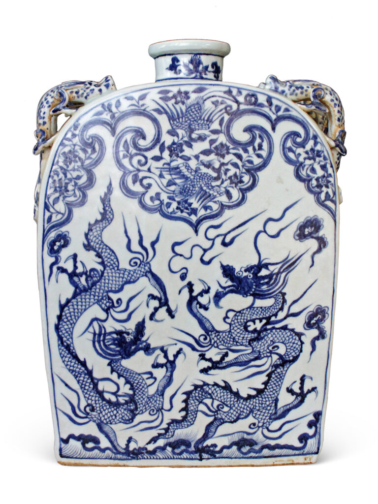 Painted Dragon Flask in Cobalt-blue Underglaze