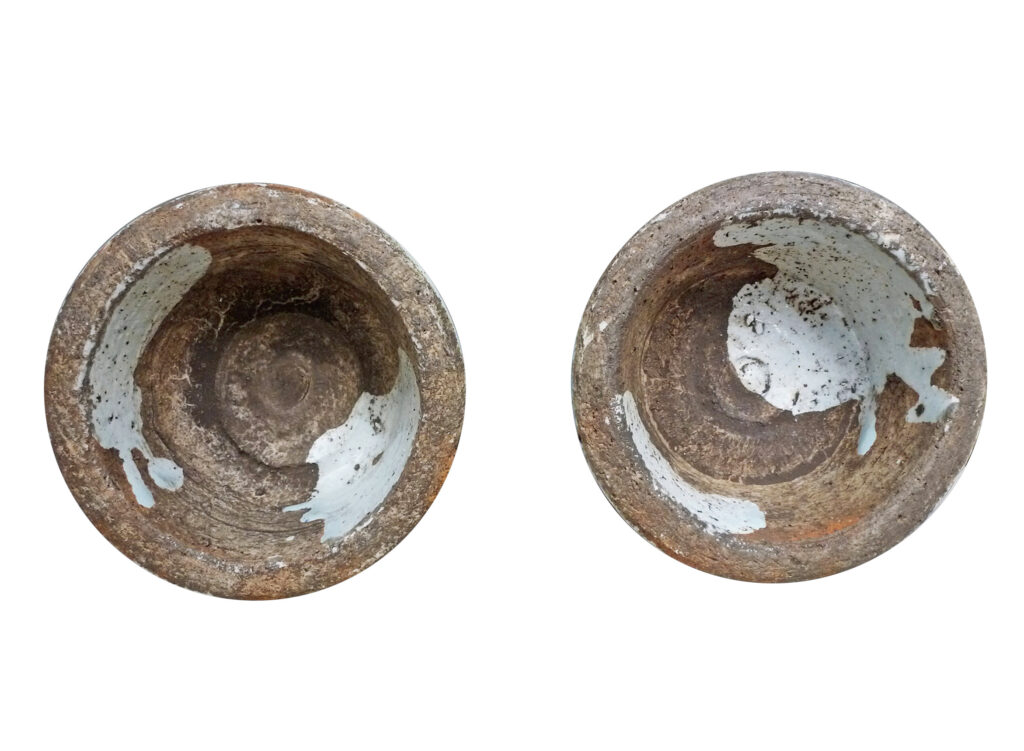 胎體厚重,施白釉,釉面肥腴透亮。青料色澤濃豔鮮麗,藍中帶紫。色深處有明顯的凝聚斑和鐵銹斑,凝聚斑是進口鈷料蘇麻離青之特殊現象,凝而聚之,天然成趣。根據目前資料,迄今同類型之對瓶,存世而完整的,僅有三對。第一對,首推現存於英國戴維德中國藝術基金之「至正十一年」銘文對瓶;第二對,為澳洲華僑寧志超先生家族所藏。以上兩對體積、器型及紋飾幾乎一致,只是底足異樣,前者是臺足、後者是淺足。第三對,就是此雲龍對瓶,也許器型及紋飾畧遜一籌,但畢竟距今已七百多年,仍可以保存成對者,實屬難能可貴,當為罕有之珍品也。
