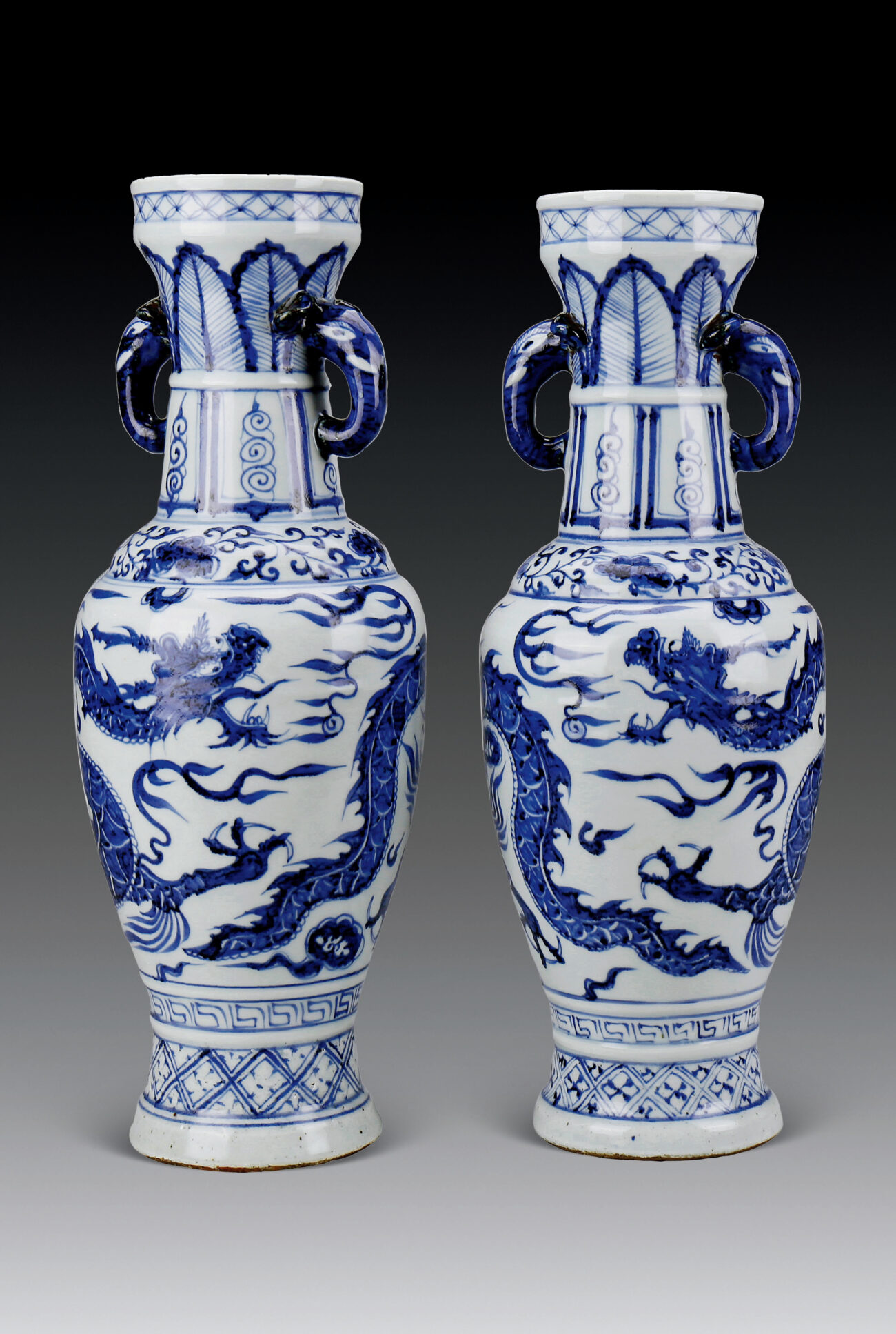 A Pair of Vases with Dragon Pattern in Cobalt-blue Underglaze