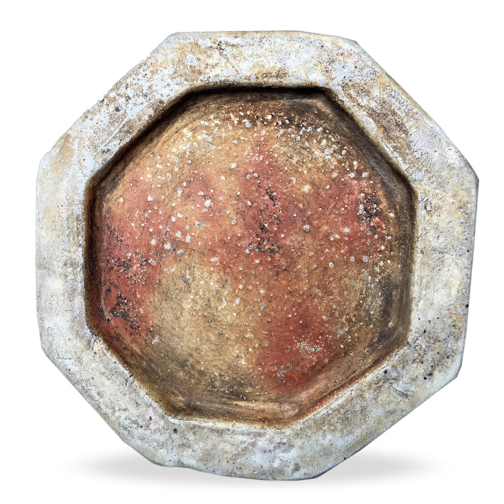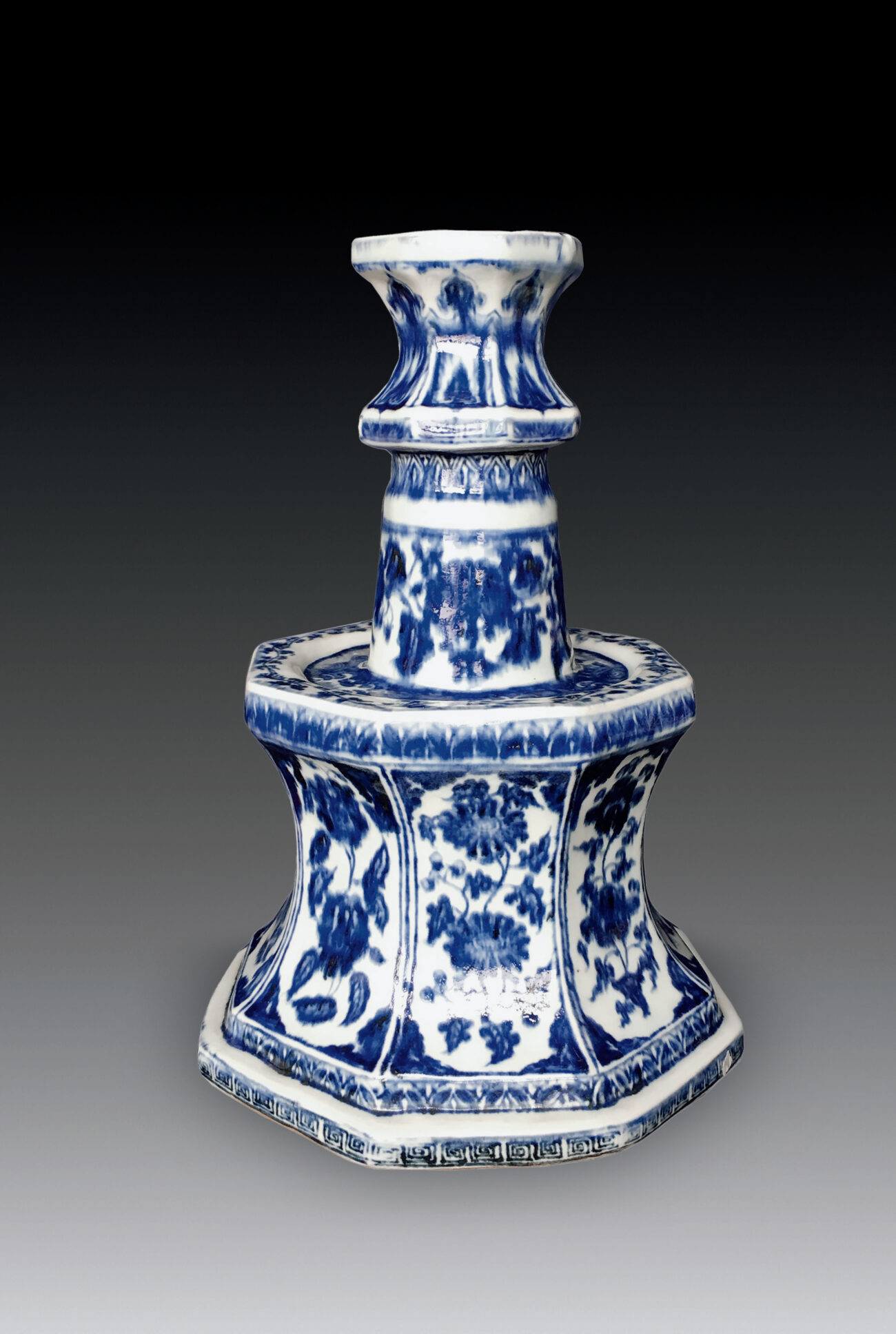 Octagonal Candle Holder with Floral Design in Underglazed Cobalt-blue