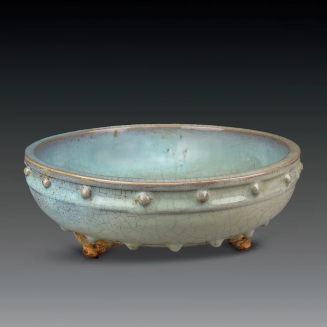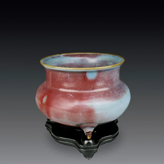 宋 鈞窯 粉青釉葡萄紫三足爐