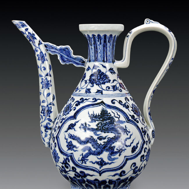 明 永樂窯 青花開光五爪騰龍紋執壺