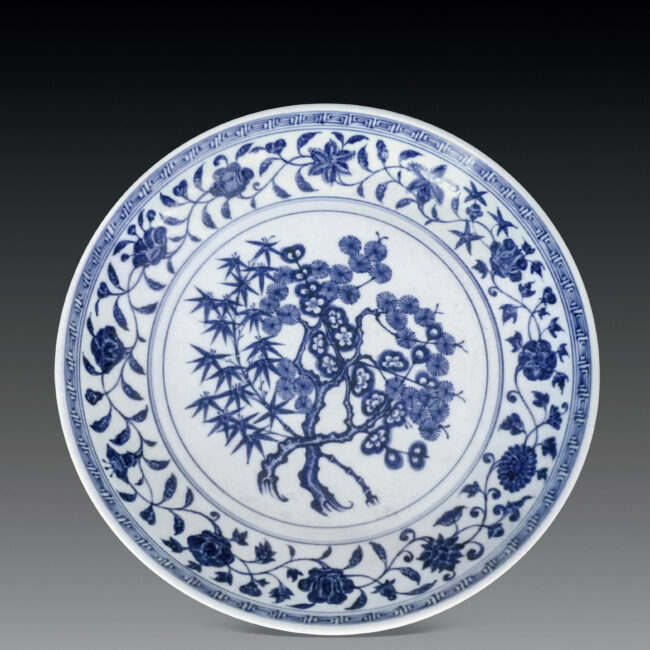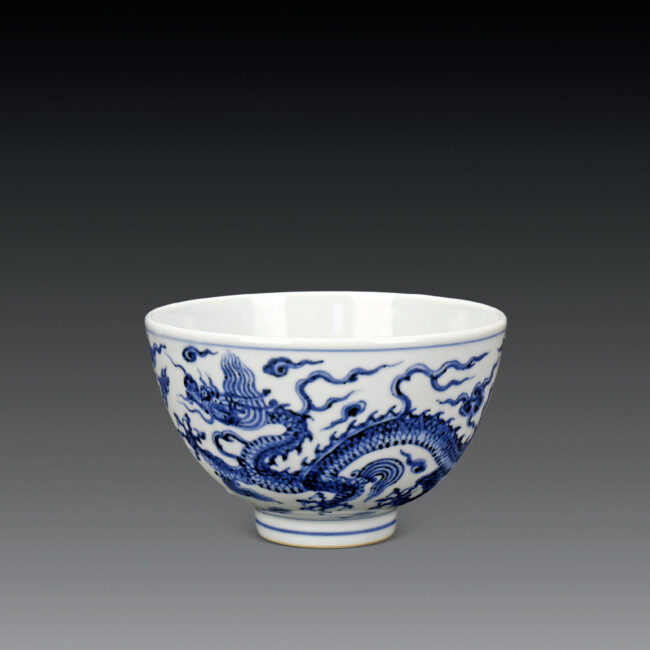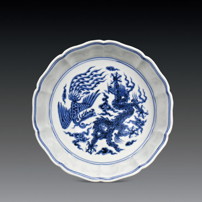 明 宣德窯 青花 龍鳳紋葵瓣式洗