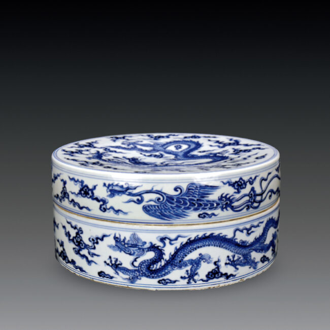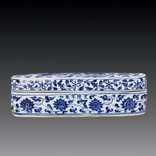 明 宣德窯 青花 龍鳳紋帶蓋墨硯
