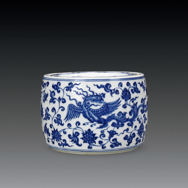 明 宣德窯 青花 鳳凰穿蓮紋帶蓋水丞