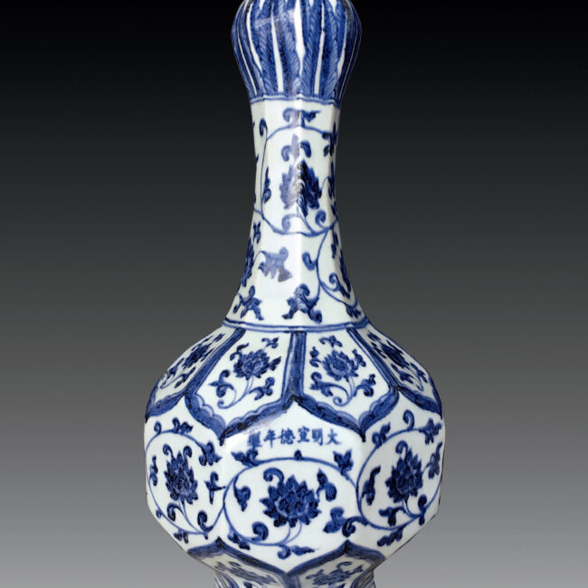 明 宣德窯 青花 蓮紋蒜頭八棱瓶
