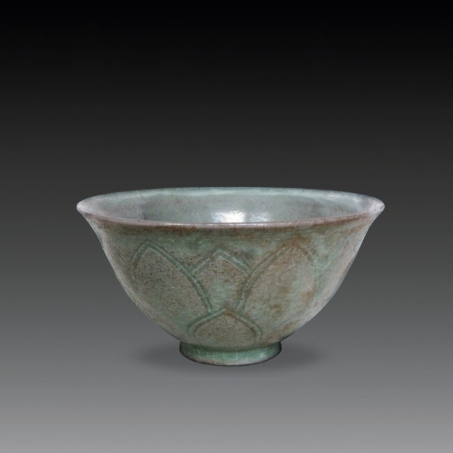 宋 耀州窯 仿汝窯青釉刻蓮瓣紋碗