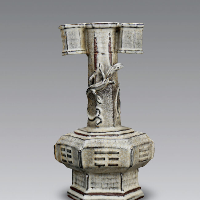 宋 六棱貫耳塑貼螭虎八卦紋瓶