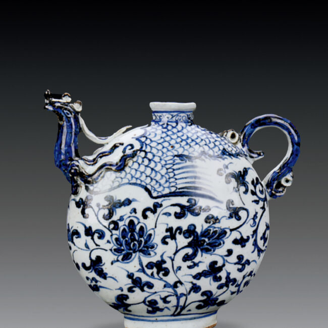 元/ 明 青花 塑貼鳳首流扁執壺