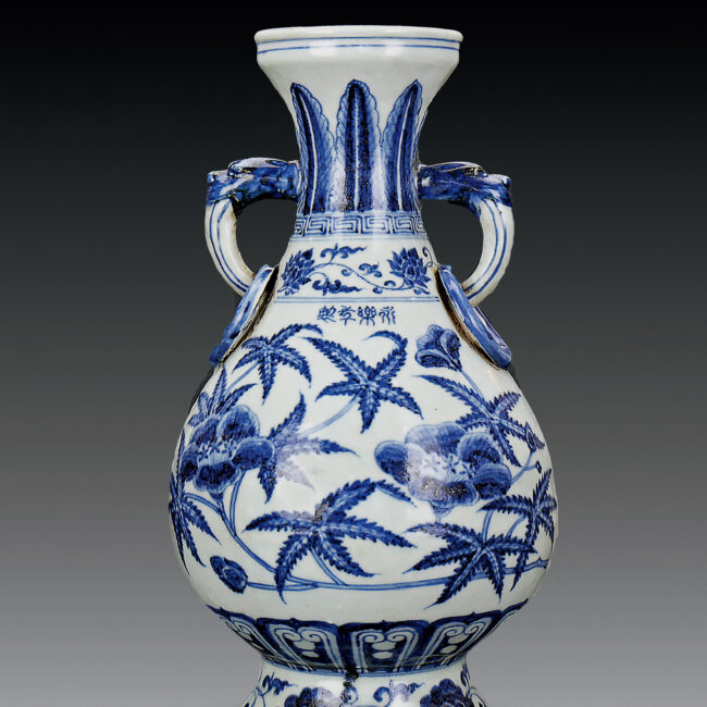 明 永樂窯 青花雙耳銜環花卉紋瓶