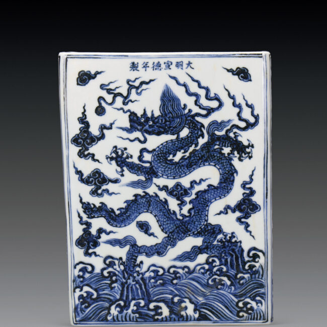 明 宣德窯 青花龍紋書銜