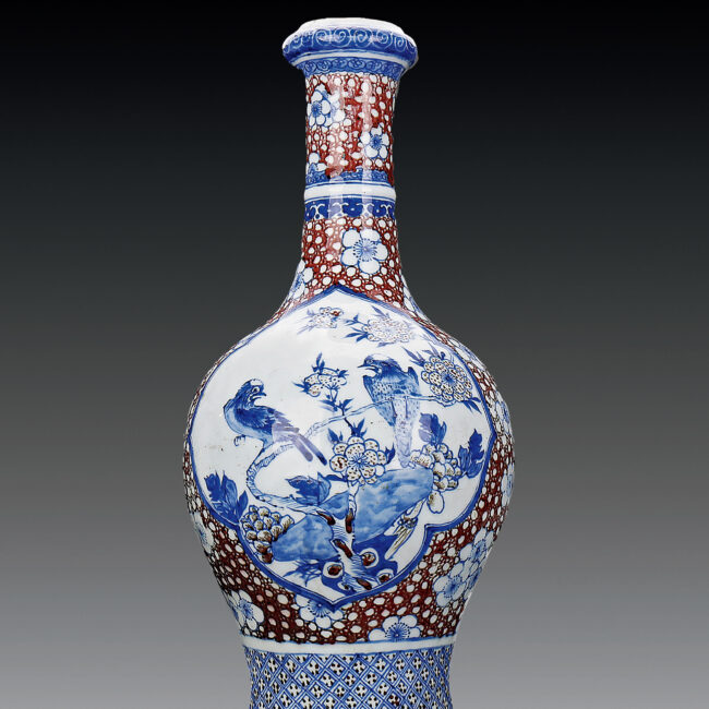 清 康熙 青花釉裏紅開光花鳥紋瓶
