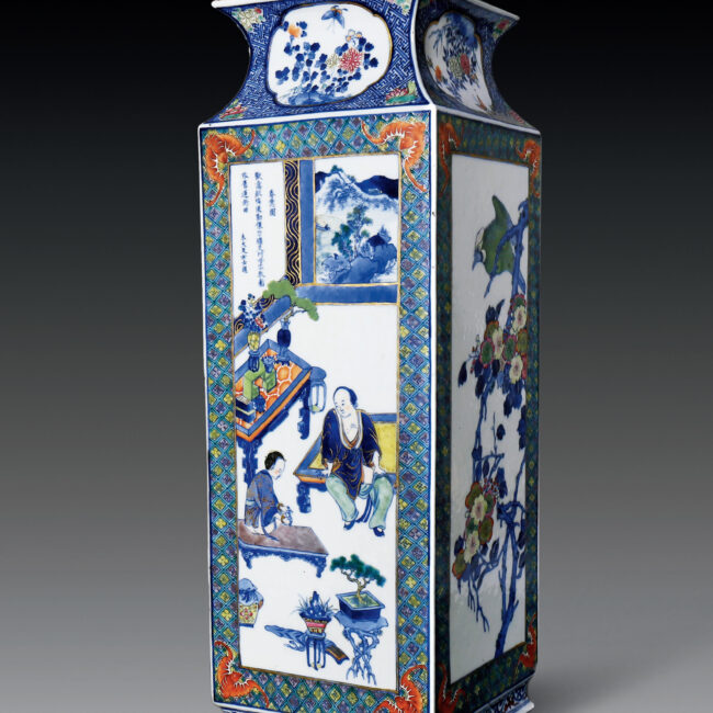 清 乾隆 青花琺瑯彩描金人物花鳥紋菱形瓶