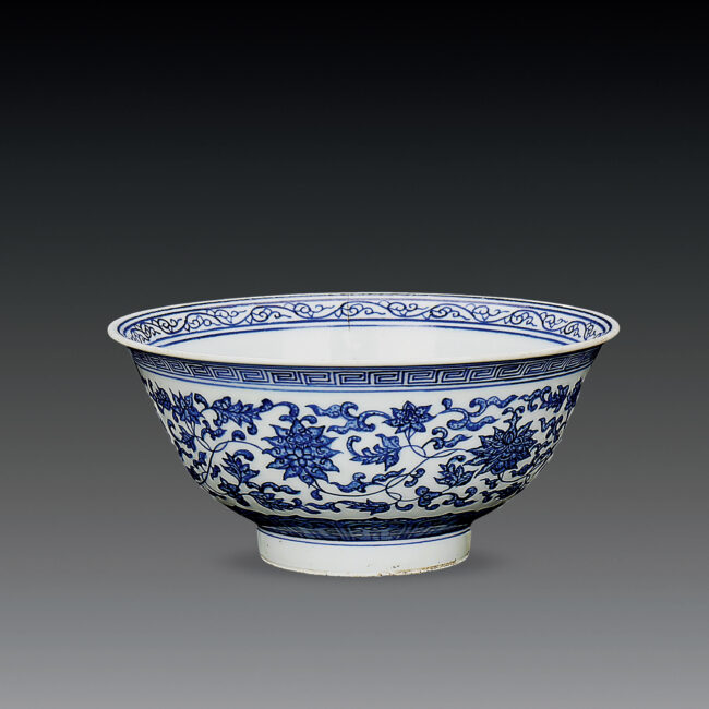 清 乾隆窯 青花纏枝花卉紋壽字碗