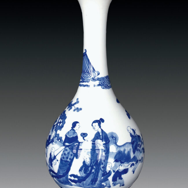 清 康熙 青花四妃十六子圖膽瓶